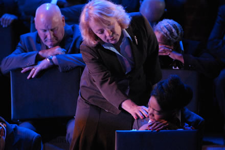 A speech about the evils of racism. The tea lady arrives. She is black. She sings the inspirational gospel song Hold On, which morphs strangely into a perky Cameroonian marching ditty Cassez la Jambe. It’s like the mid-conference piss-up.
